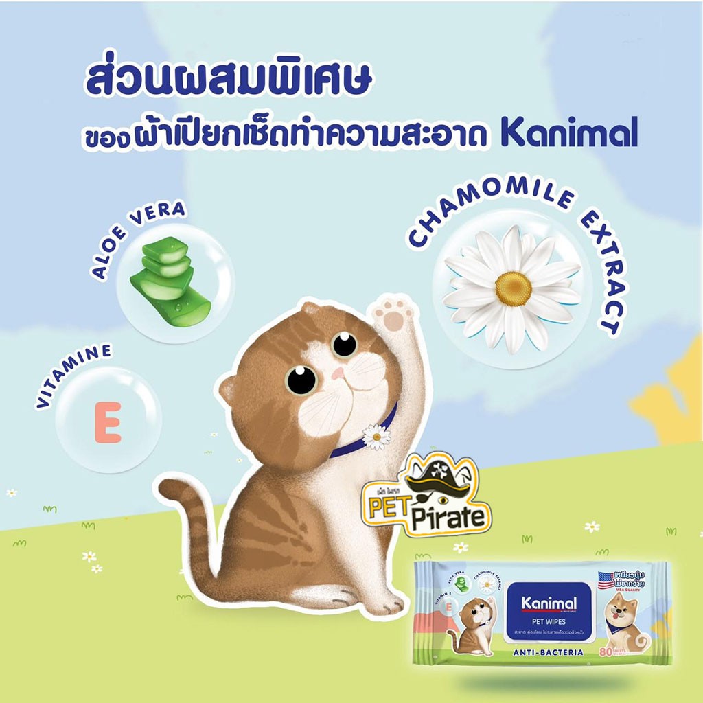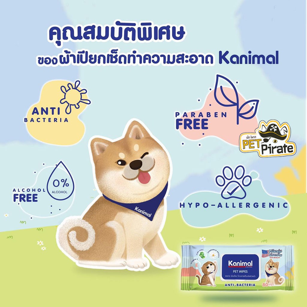 • ผ้าเปียก Kanimal ใช้สำหรับเช็ดตัวสุนัขและแมว