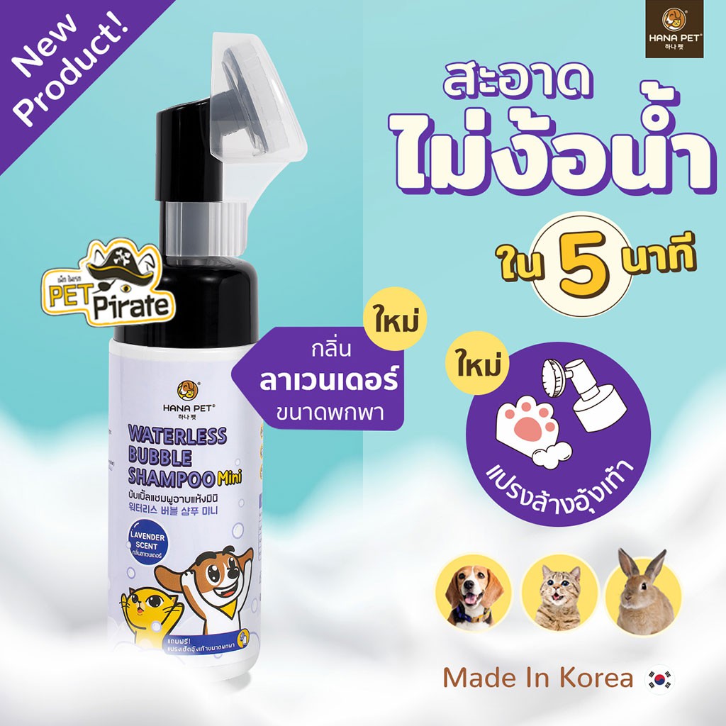 Hana Pet บับเบิ้ลแชมพูอาบแห้งมินิ กลิ่นลาเวนเดอร์ หอม ผ่อนคลาย สินค้าพรีเมี่ยม นำเข้าจากประเทศเกาหลี