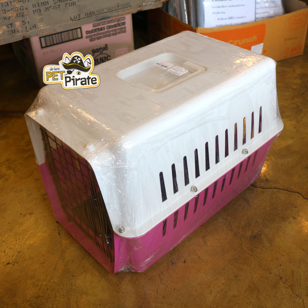 Pet Carrier กรงพลาสติกเดินทางสำหรับสุนัขและแมว มาพร้อมตะแกรงพลาสติกรองพื้นด้านล่าง ขนาด Size M สำหรับสุนัขความสูงไม่เกิน 25 ซม.
