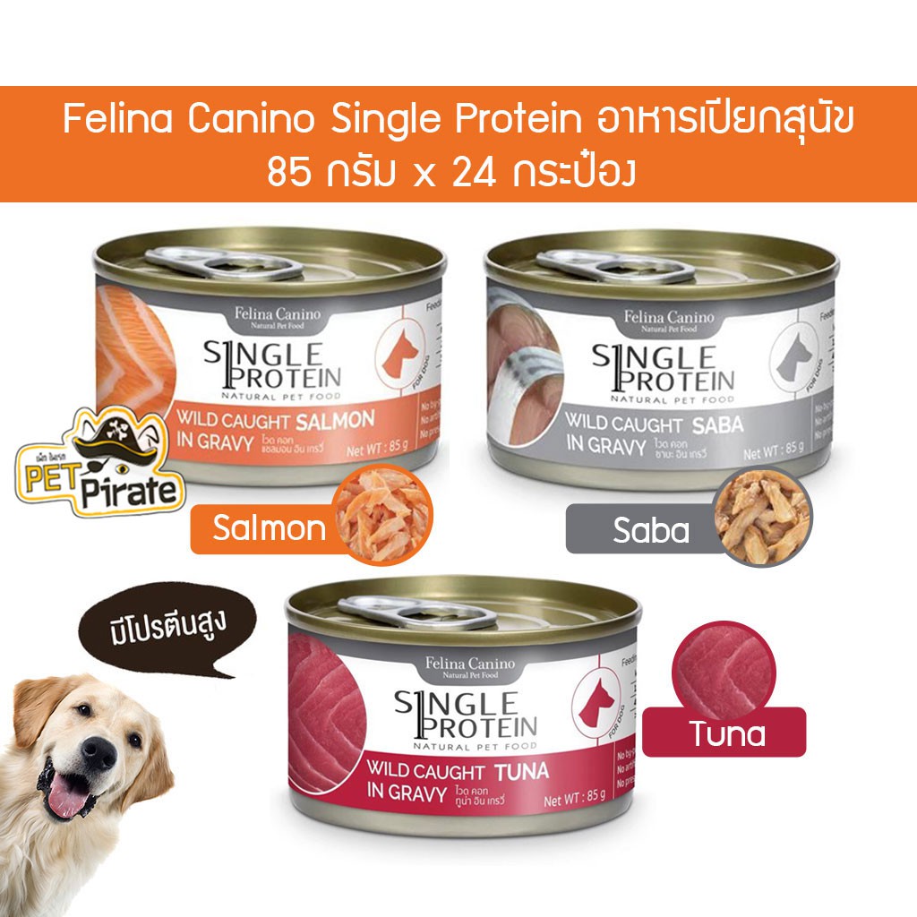 Felina Single Protein อาหารเปียกสุนัข [85 g x 24 กระป๋อง] เนื้อเน้นๆ ไม่มีวัตถุกันเสีย อาหารสุนัขแบบกระป๋อง
