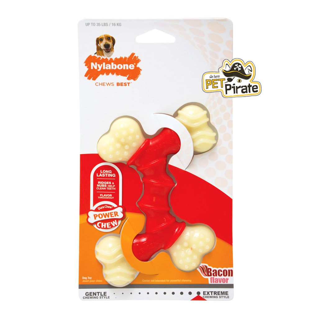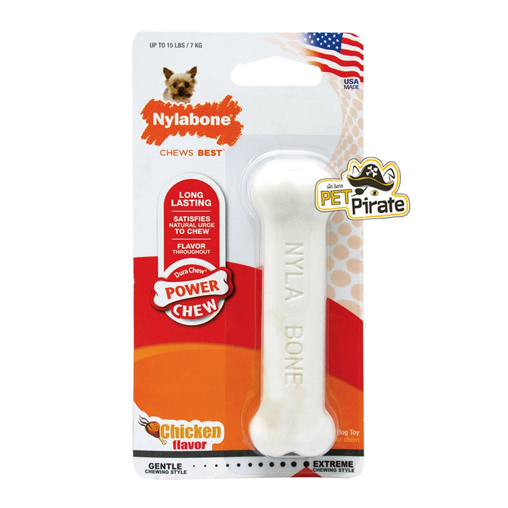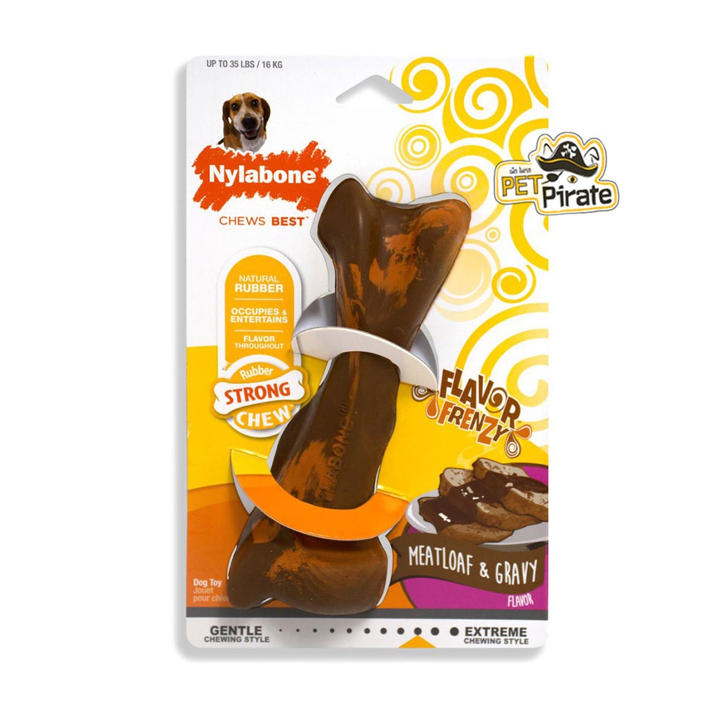 Nylabone ของเล่นยางกัดแทะขัดฟัน รสไก่ รูปทรงกระดูก สำหรับสุนัขที่รักการแทะกัดเคี้ยว ระดับรุนแรง