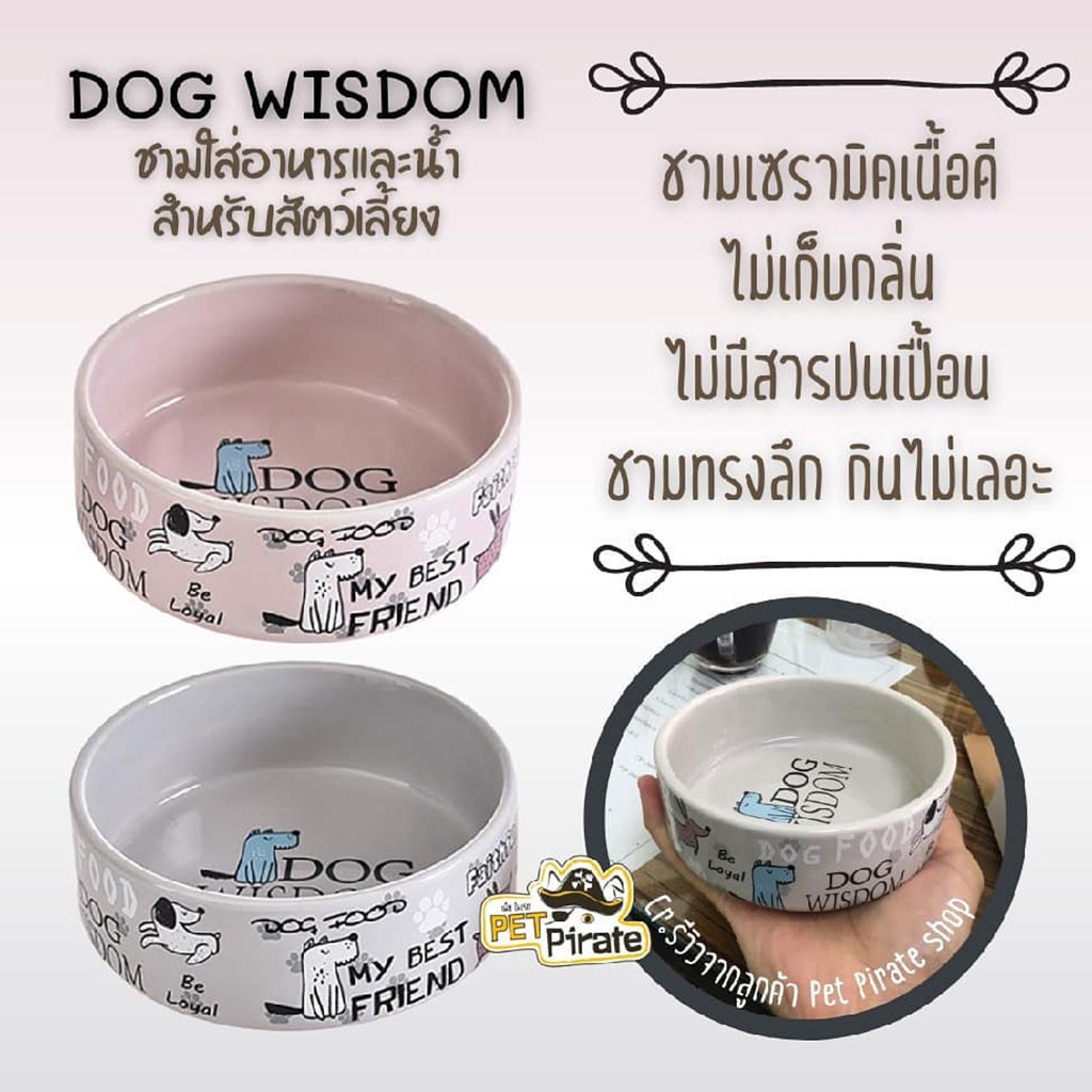 ชามข้าวสุนัขเซรามิค Dog Wisdom สำหรับใส่อาหารและน้ำให้สุนัข