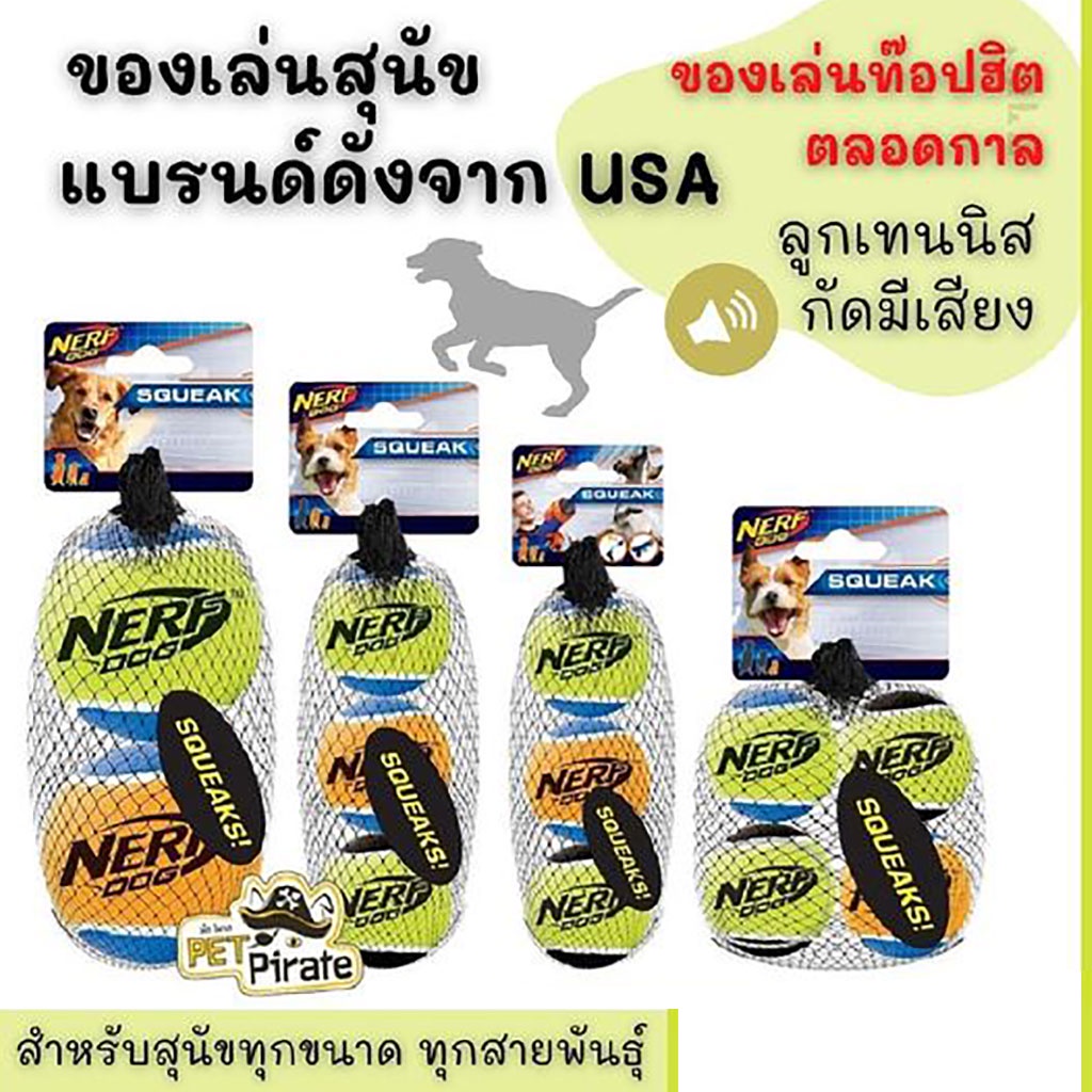 Nerf Dog Squeak Tennis Balls ลูกเทนนิส กัดมีเสียง ของเล่นหมา แบรนด์ดังจาก USA มี 4 ไซส์ สำหรับสุนัขทุกขนาด ทุกสายพันธุ์