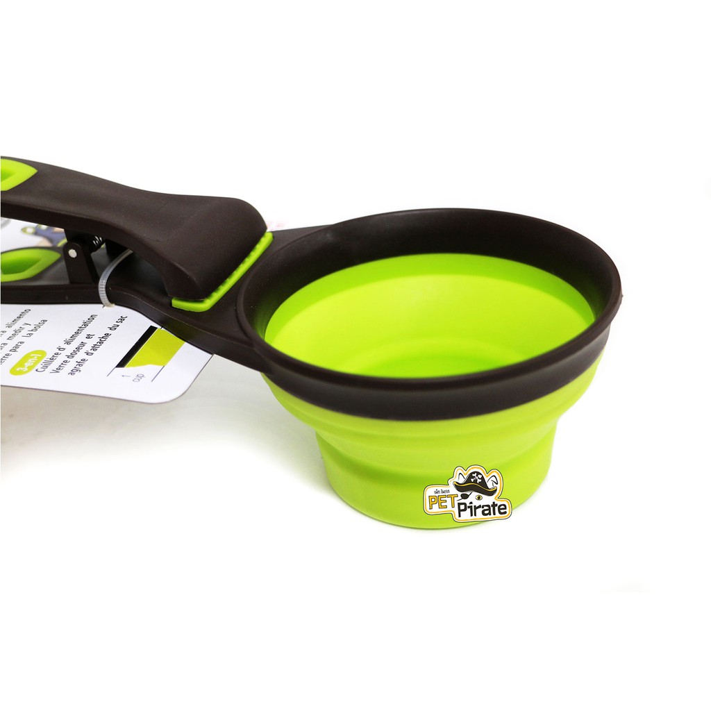 คลิปหนีบถุงอาหารพร้อมช้อนตักพับแบนได้ - เป็นถ้วยวัดตวงสำหรับการควบคุมปริมาณอาหารที่ให้กับสัตว์เลี้ยง