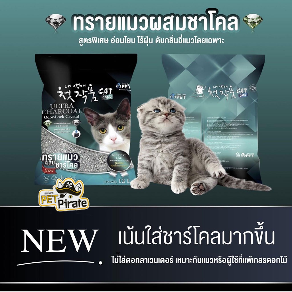 ทรายแมว Two Two ทรายแมวผสมชาร์โคลเพิ่มพิเศษ ดูดกลิ่นเพิ่มอีกหลายเท่าตัว