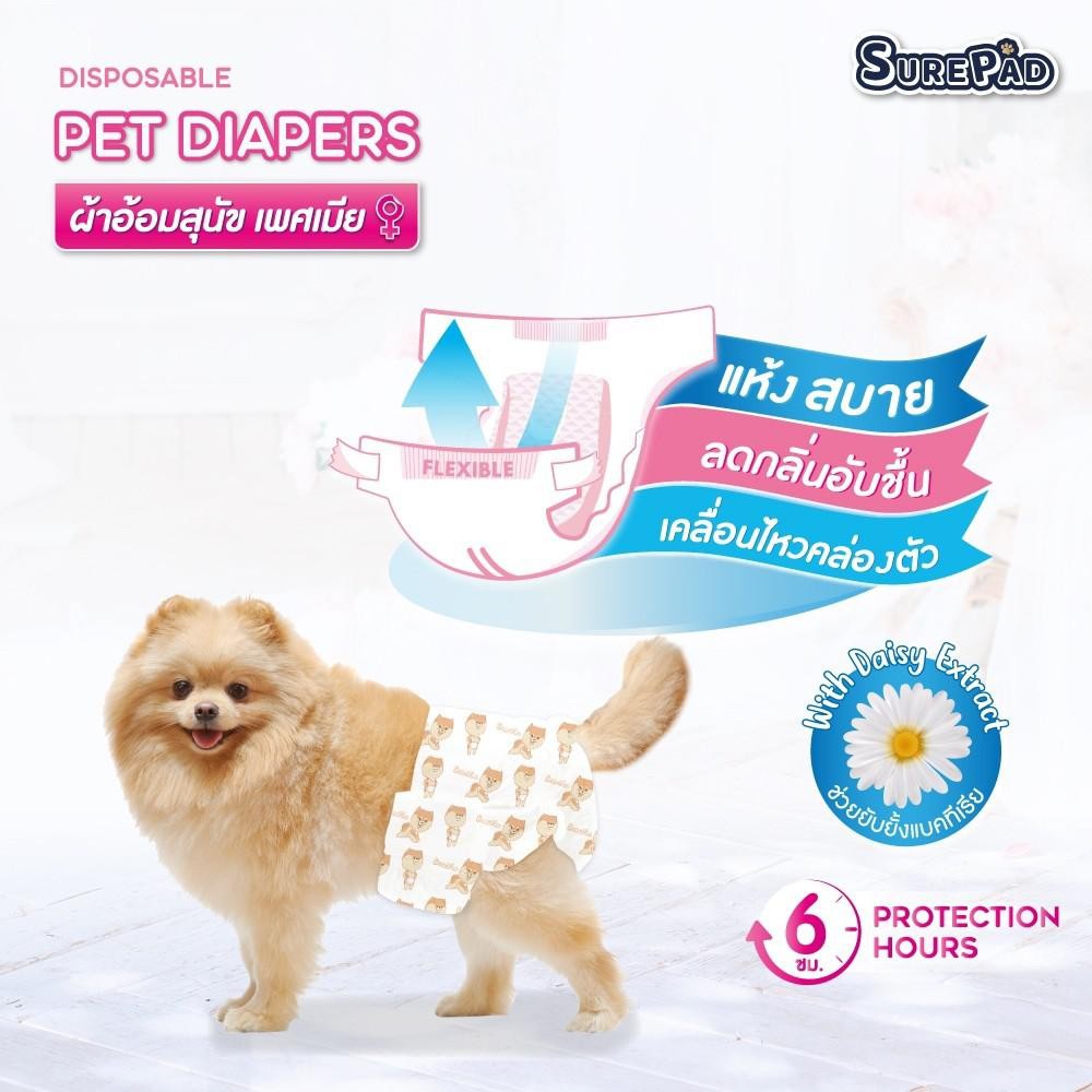 ผ้าอ้อมสุนัขเพศเมีย SUREPAD แห้งสบาย ลดกลิ่นอับชื้น เคลื่อนไหวคล่องตัว