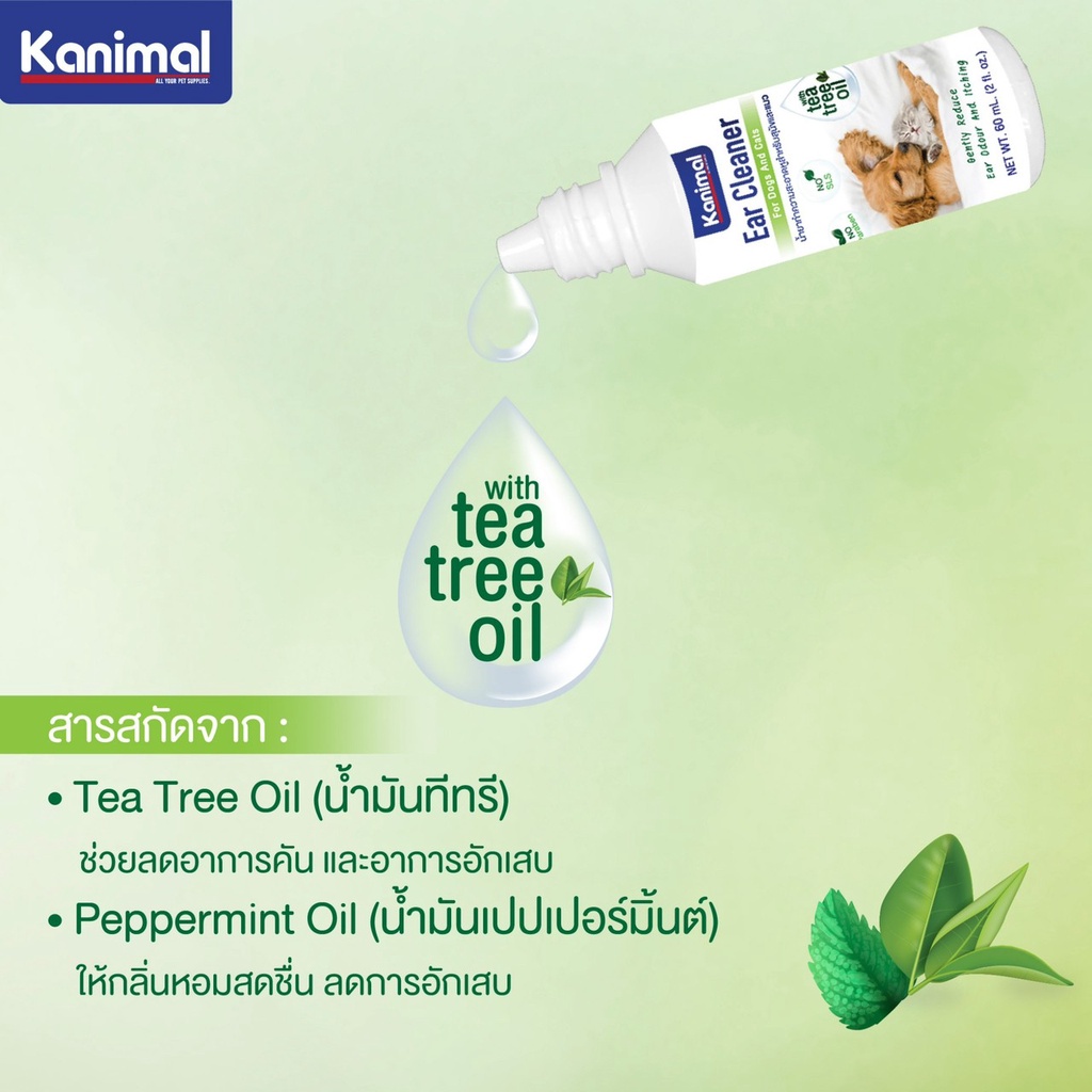Kanimal Ear Cleaner ผลิตภัณฑ์ทำความสะอาดหูสำหรับสัตว์เลี้ยง สูตรอ่อนโยน สะอาด กลิ่นหอมสดชื่น ลดการอักเสบ และป้องกันโรคหูอักเสบ 60 ml