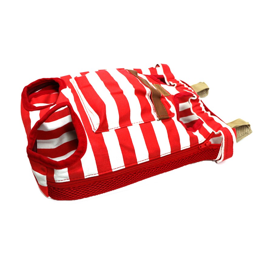 เป้อุ้มน้องหมาแมวไว้ด้านหน้าเพื่อความสะดวกสบายในการพาน้องๆ ออกเที่ยว อยู่ใกล้ตาผ้าเนื้อหนา ลายขวางอินเทรนด์สุดด้านหน้ามีกระเป๋าสำหรับใส่ของเล็กๆ น้อยๆ ตกแต่งด้วหนังพียูสีน้ำตาลมีซิปและตีนตุ๊กแก 2 ด้านเป็นตัวเปิด-ปิด มีตัวล็อคปลอกคอ มีสายรัดระหว่างสายสะพายทั้งสองด้านเพื่อให้กระชับไม่หลุดง่ายระหว่างการใช้งาน สายสะพายบุนุ่มเพิ่มความ