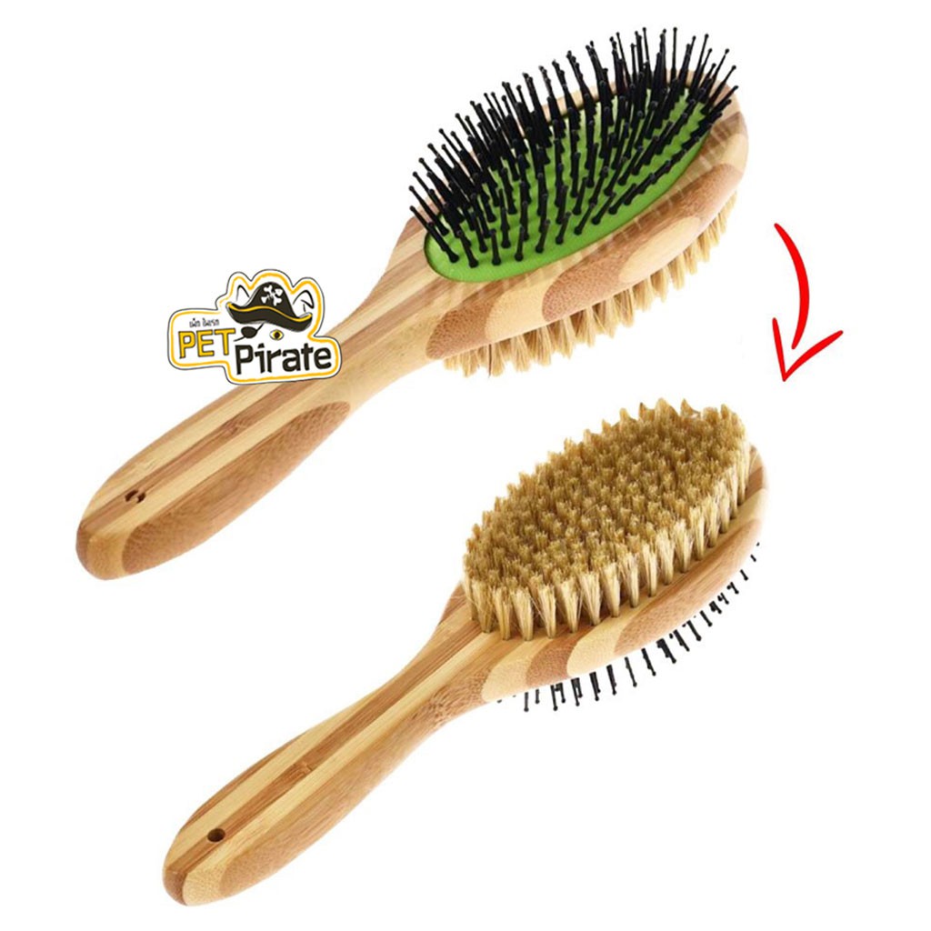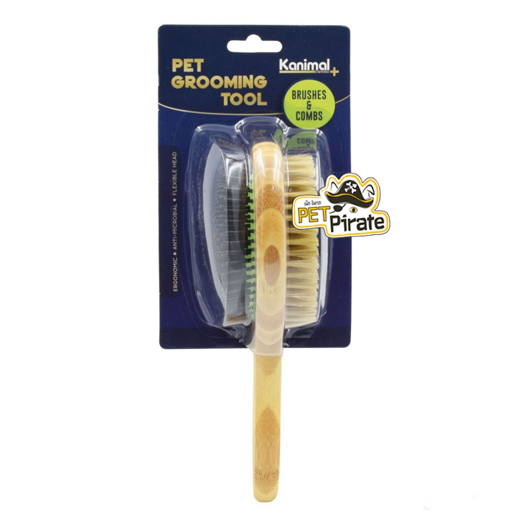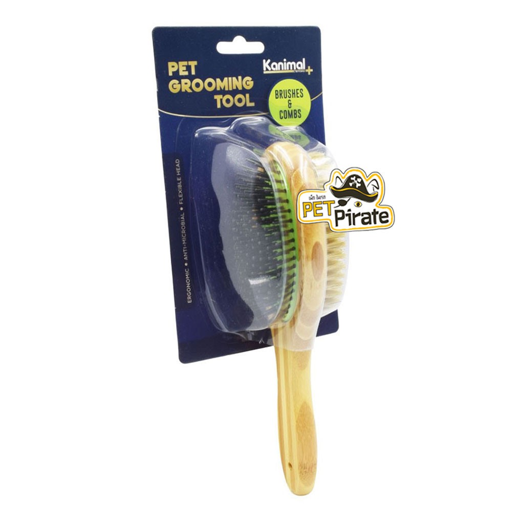 Kanimal Duo Brush แปรงหวีขนไม้ 2 ด้าน ใช้สำหรับแปรงขนสุนัข เพื่อความเงางามและสุขภาพที่ดีของเส้นขนและผิวหนัง
