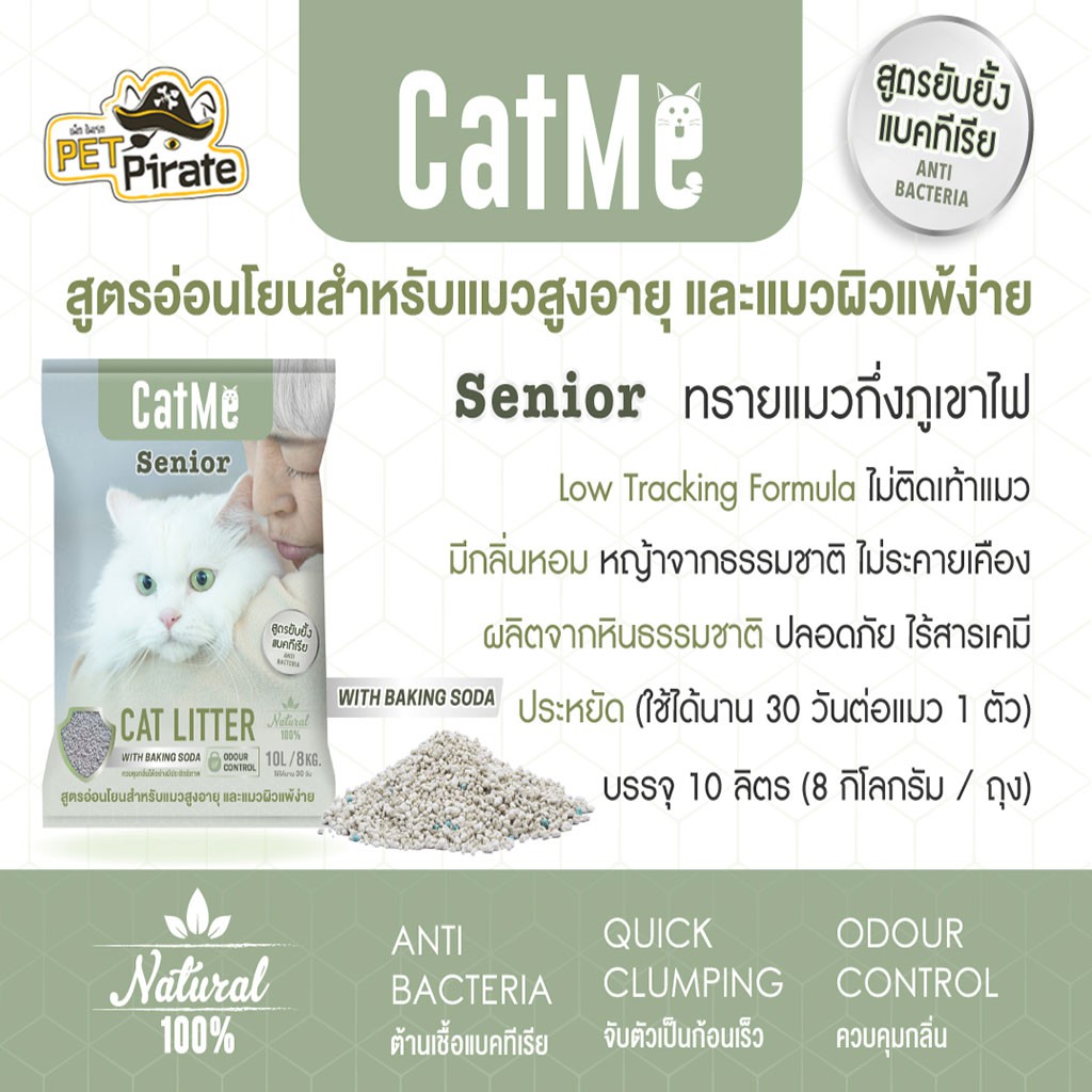 Cat me Senior ทรายแมวเบนโทไนต์ ทรายแมวภูเขาไฟจากธรรมชาติ ปราศจากสารเคมี ออกแบบสำหรับแมวสูงอายุ และ แมวผิวแพ้ง่าย