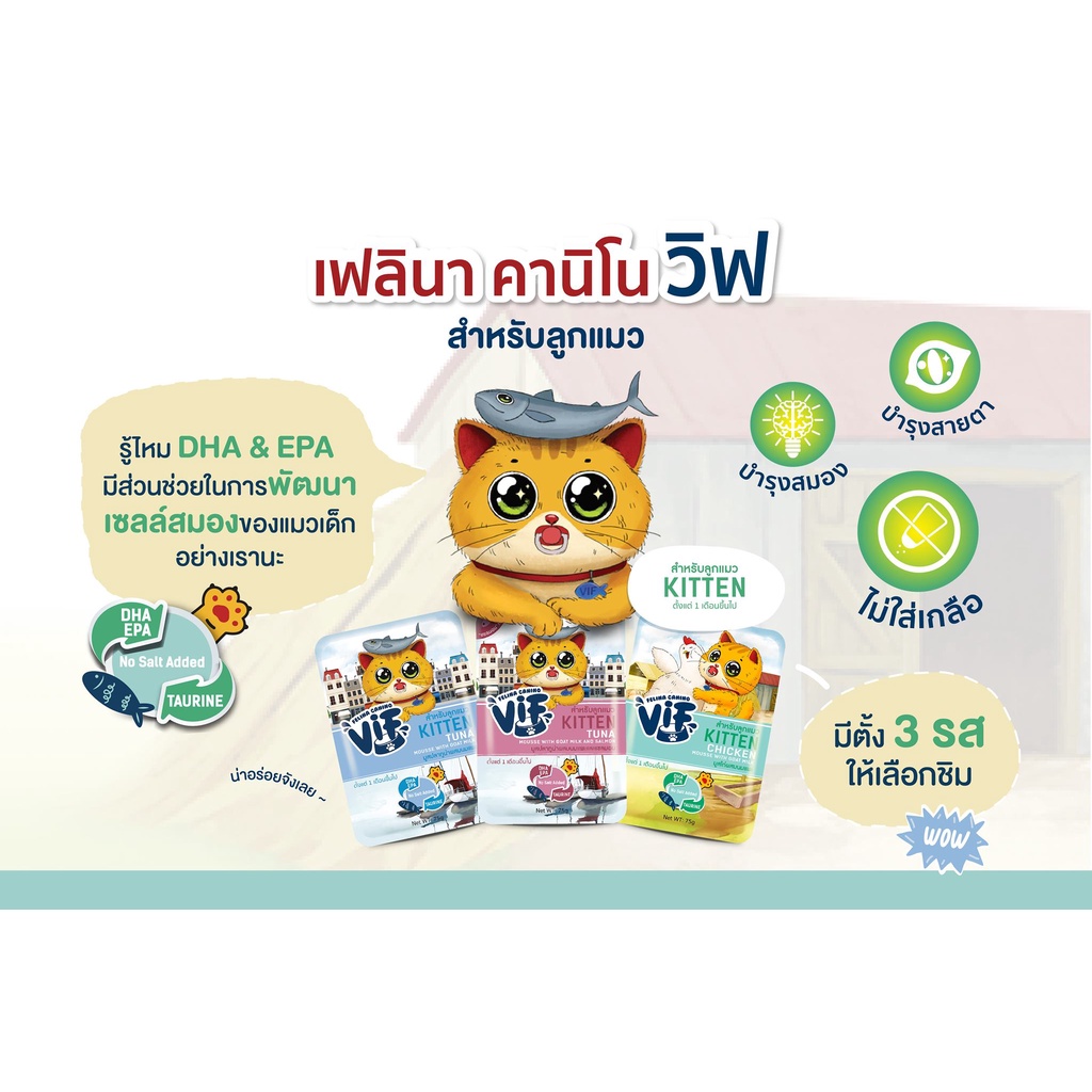 Felina Canino VIF เฟลินา คานิโน วิฟ อาหารเปียกสำหรับลูกแมว อายุ 1 เดือนขึ้นไป
