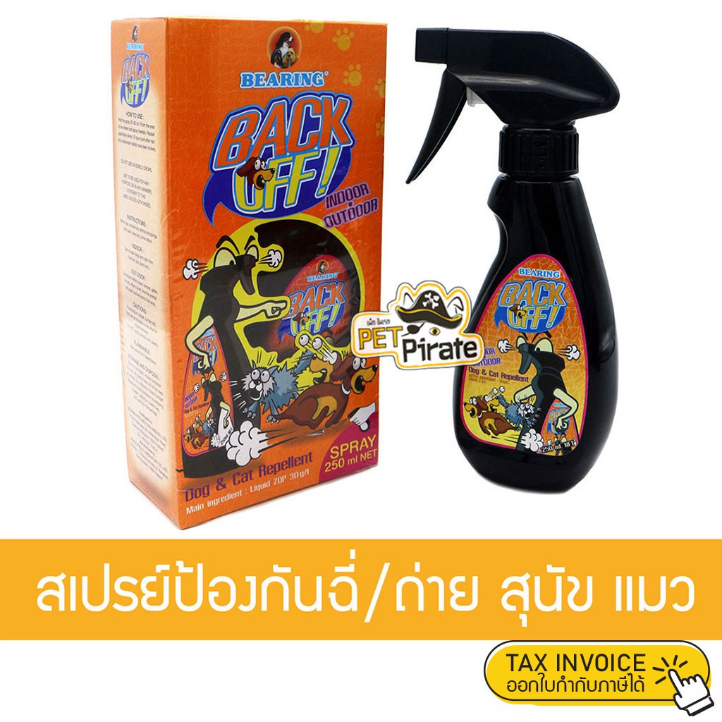 แบร์ริ่งแบ็คออฟ (Bearing Back Off) สเปรย์ป้องกันสุนัขและแมวจากพฤติกรรมอันไม่พึงประสงค์ เช่น อึและฉี่ในบริเวณที่คุณไม่ต้องการ, ขุดสวนดอกไม้, ฉี่ใส่ล้อรถ, กระถางต้นไม้, เสาไฟ, ถังขยะ ฯลฯ