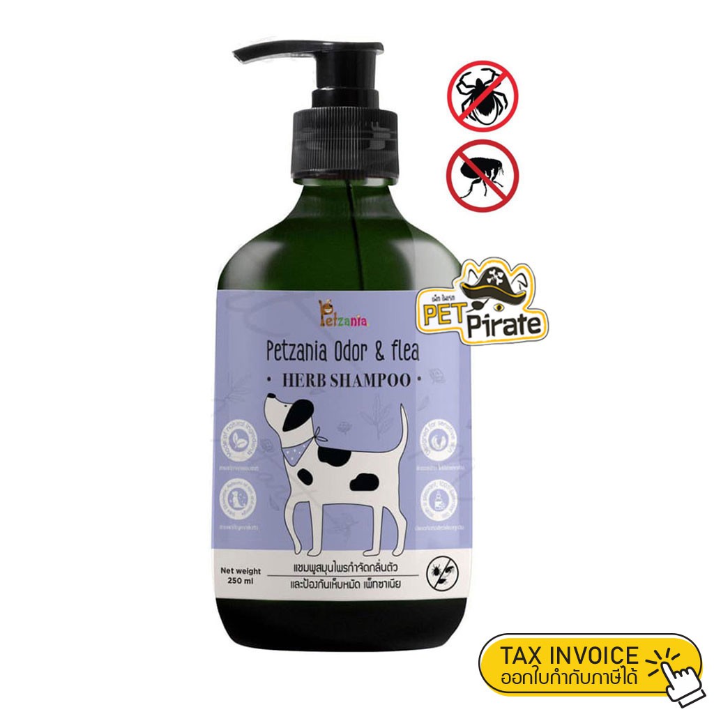 Petzania Herb Shampoo เพ็ทซาเนีย แชมพูสมุนไพรเพ็ทซาเนียสำหรับสุนัข เน้นกำจัดกลิ่นตัว และป้องกันเห็บหมัด