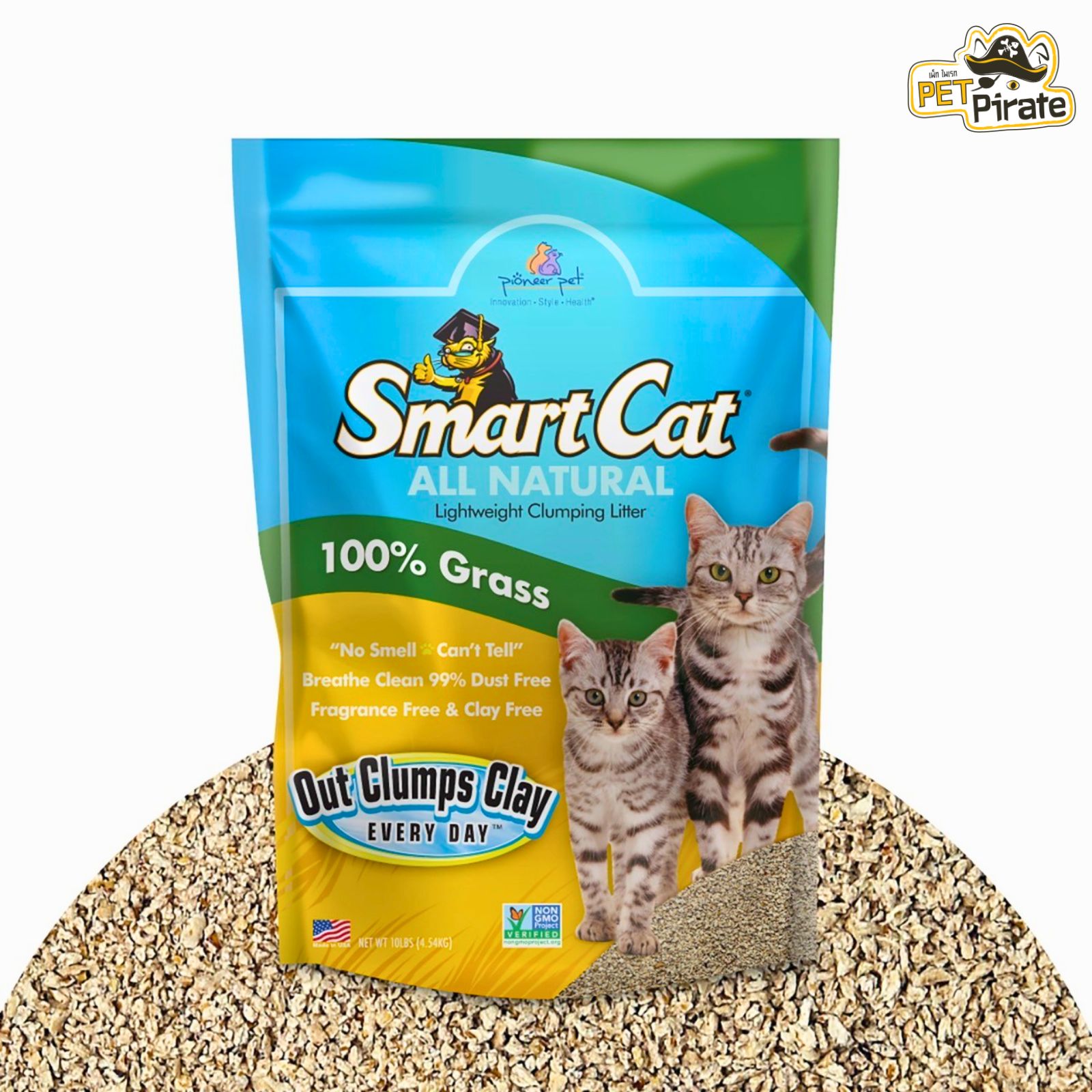 ทรายแมวผลิตจากหญ้า 100% น้ำหนักเบา นุ่มเท้า ไร้ฝุ่น 99% ปลอยภัยไร้สารเคมี ไร้สารแต่งกลิ่น ย่อยสลายได้ตามธรรมชาติ