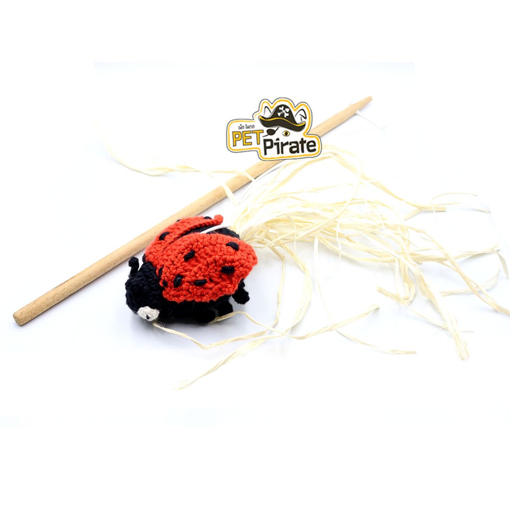 KETAWA ไม้ตกแมว เต่าทองถักโครเชต์ สีแดงดำ พร้อมติดปลายหาง ขนาด 4 x 8 x 8.5 ซม.