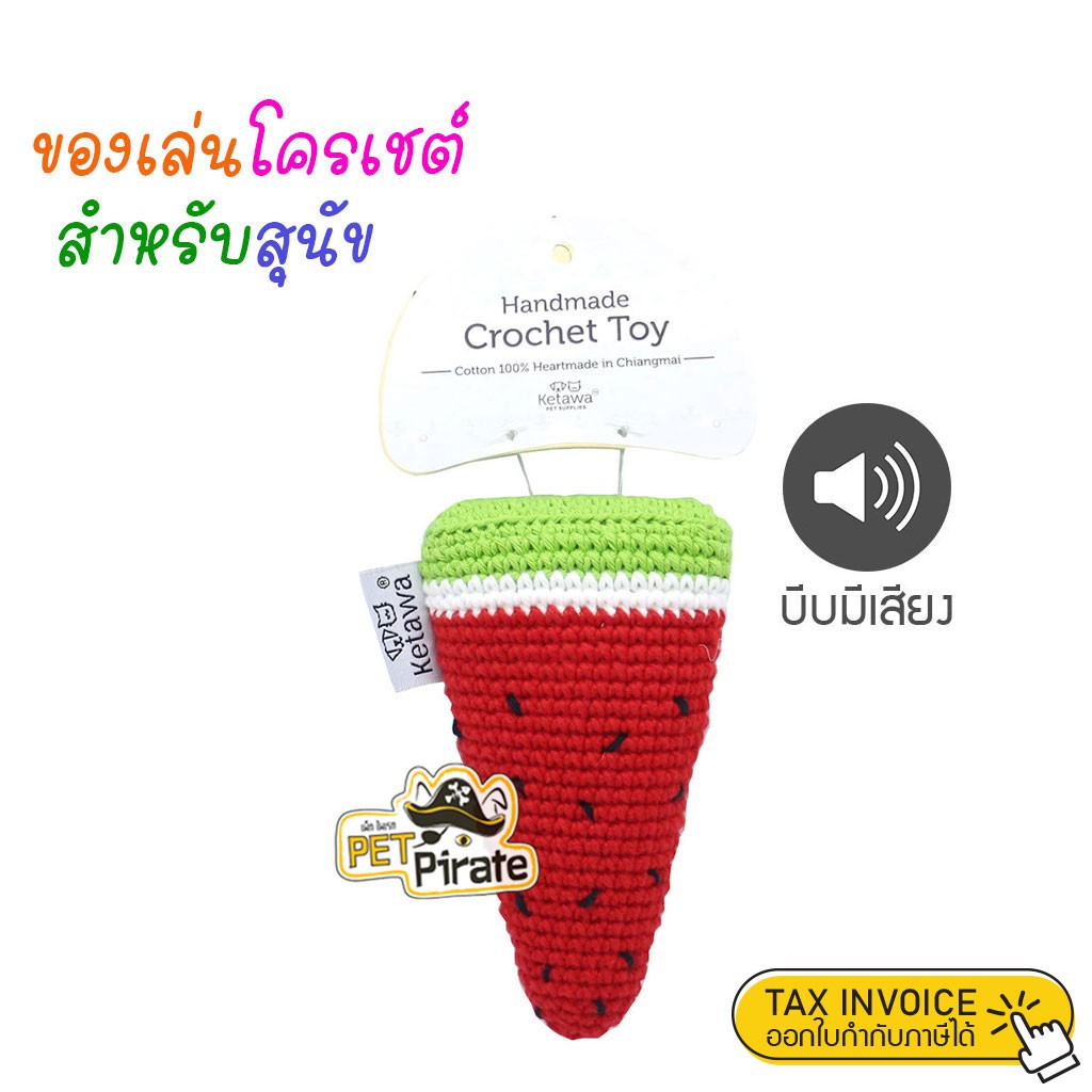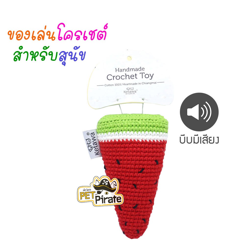 KETAWA ของเล่นน้องหมา ของเล่นโครเชต์ รูปแตงโม ผลิตจากฝ้าย 100 %