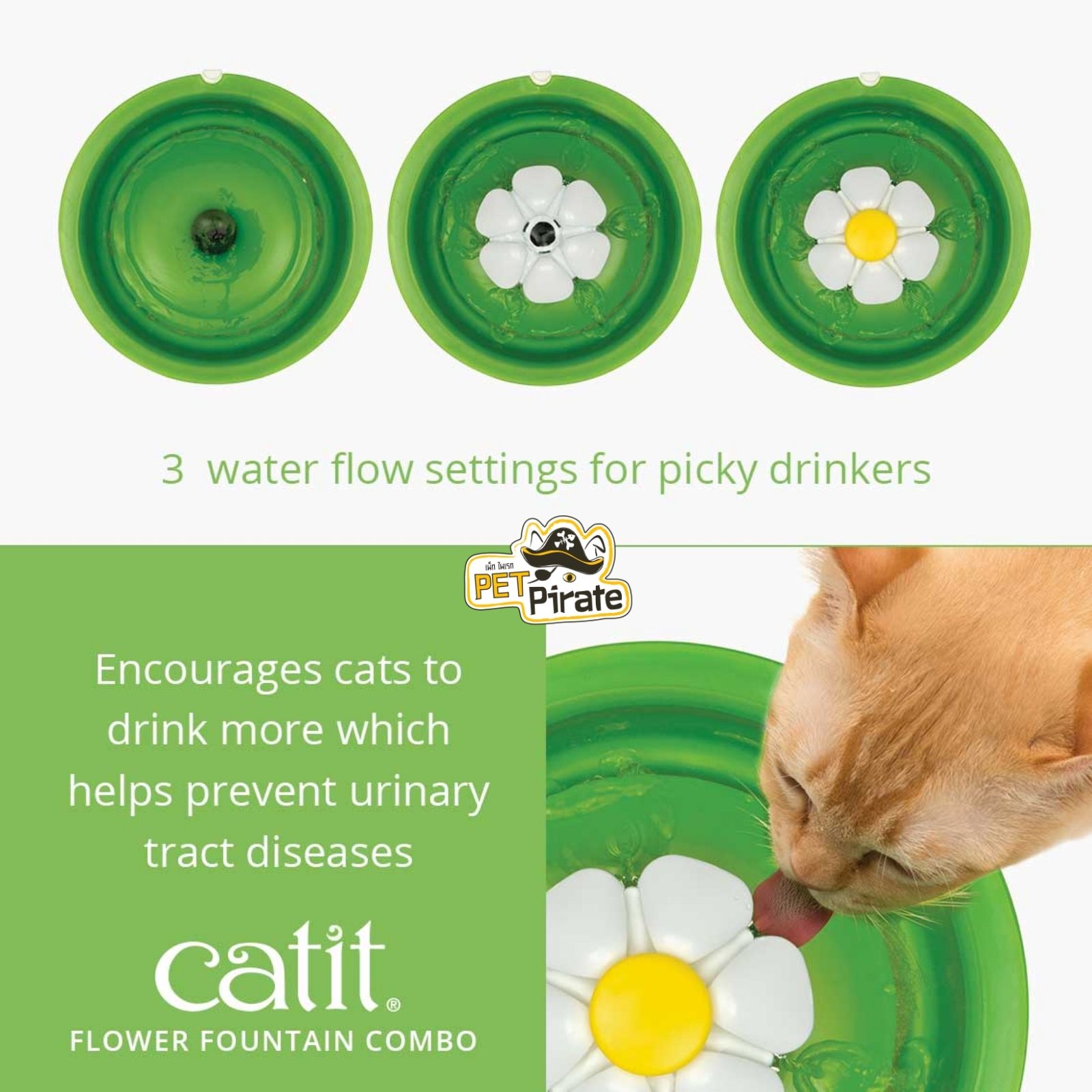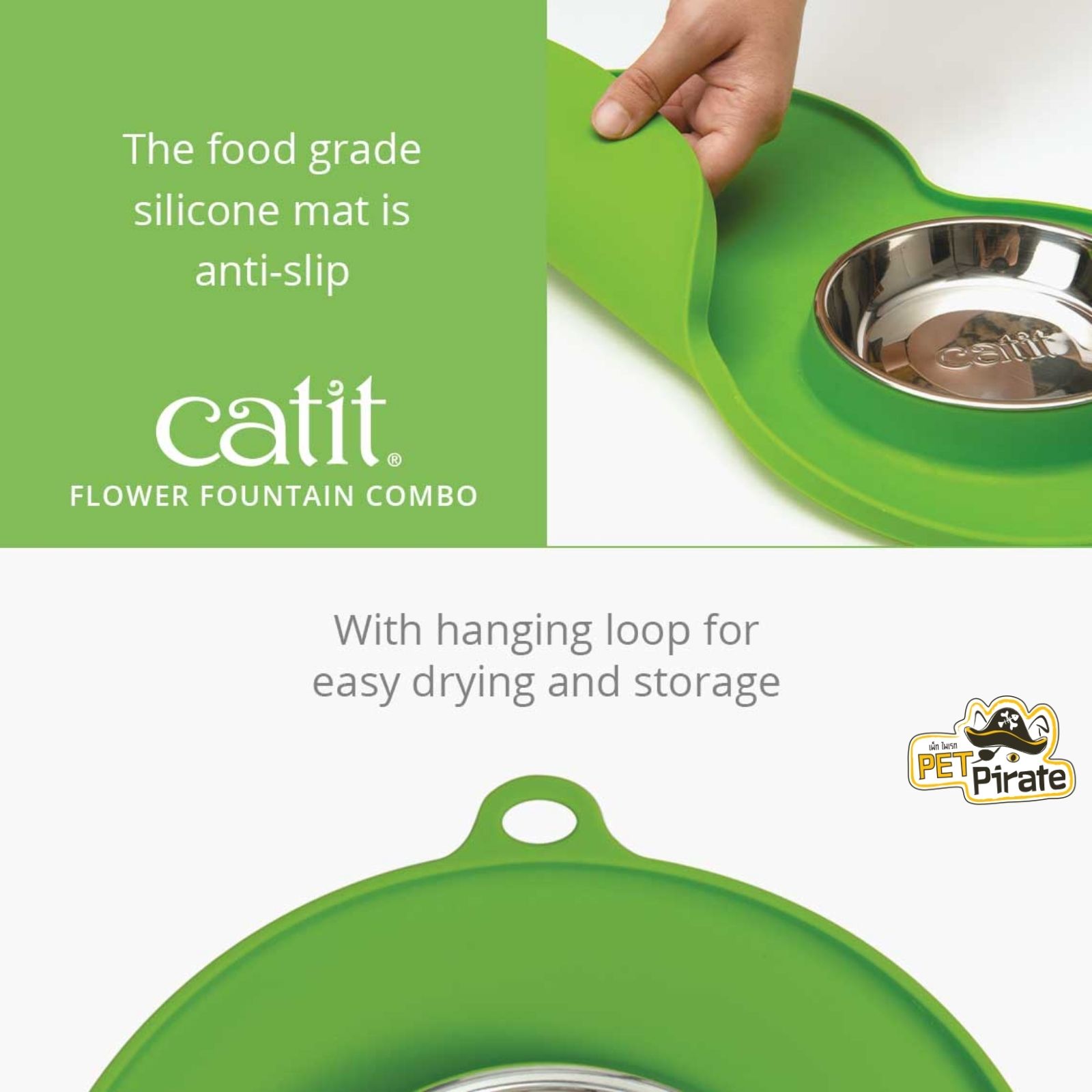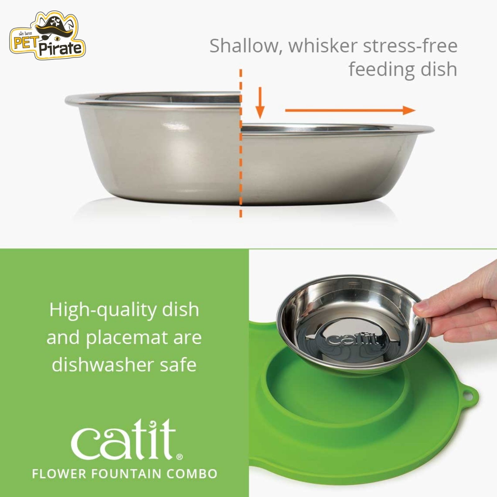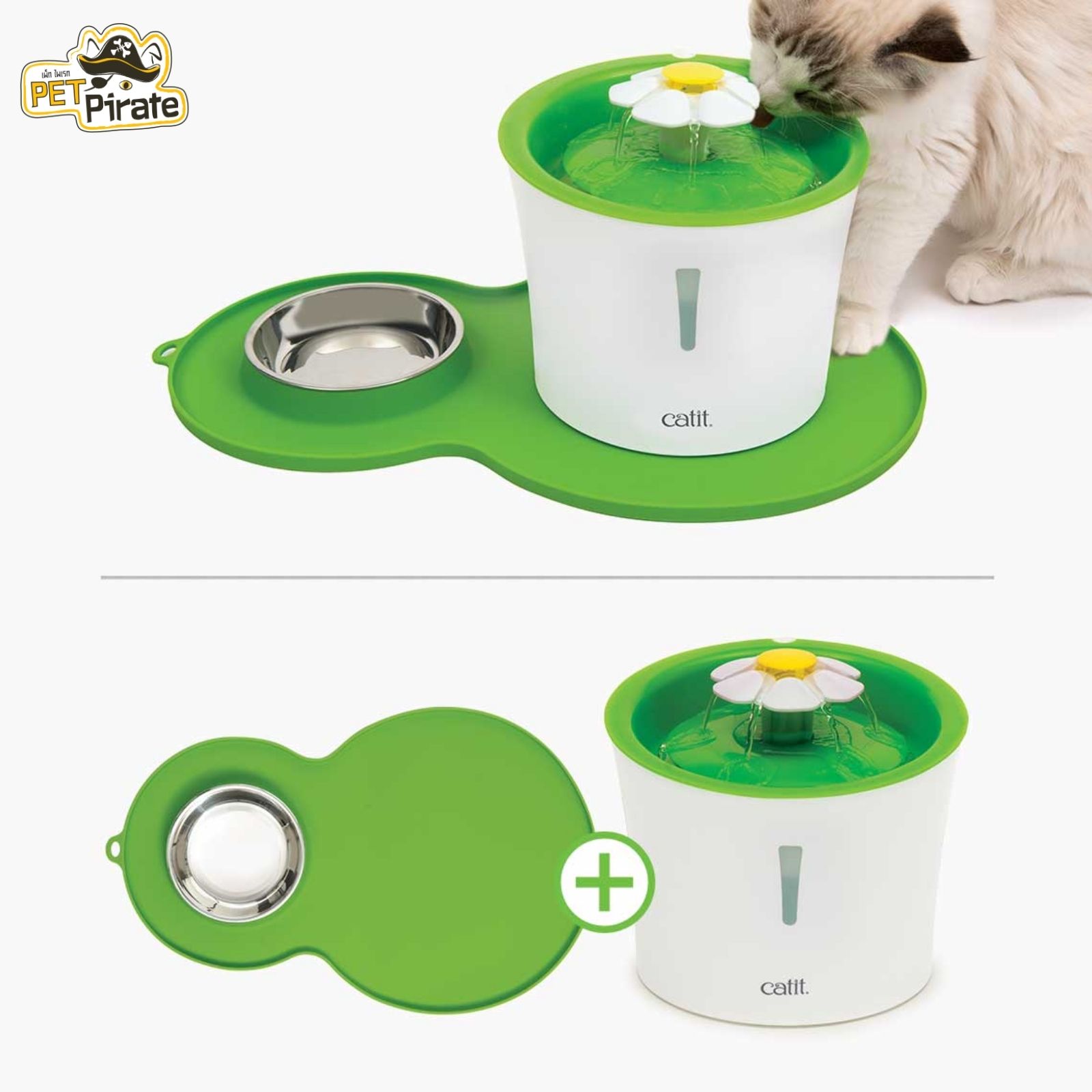 Catit Flower Fountain COMBO ชุดกินดื่มสำหรับแมว น้ำพุ พร้อม ถาดรอง และชามใส่อาหารสเตนเลสอย่างดี