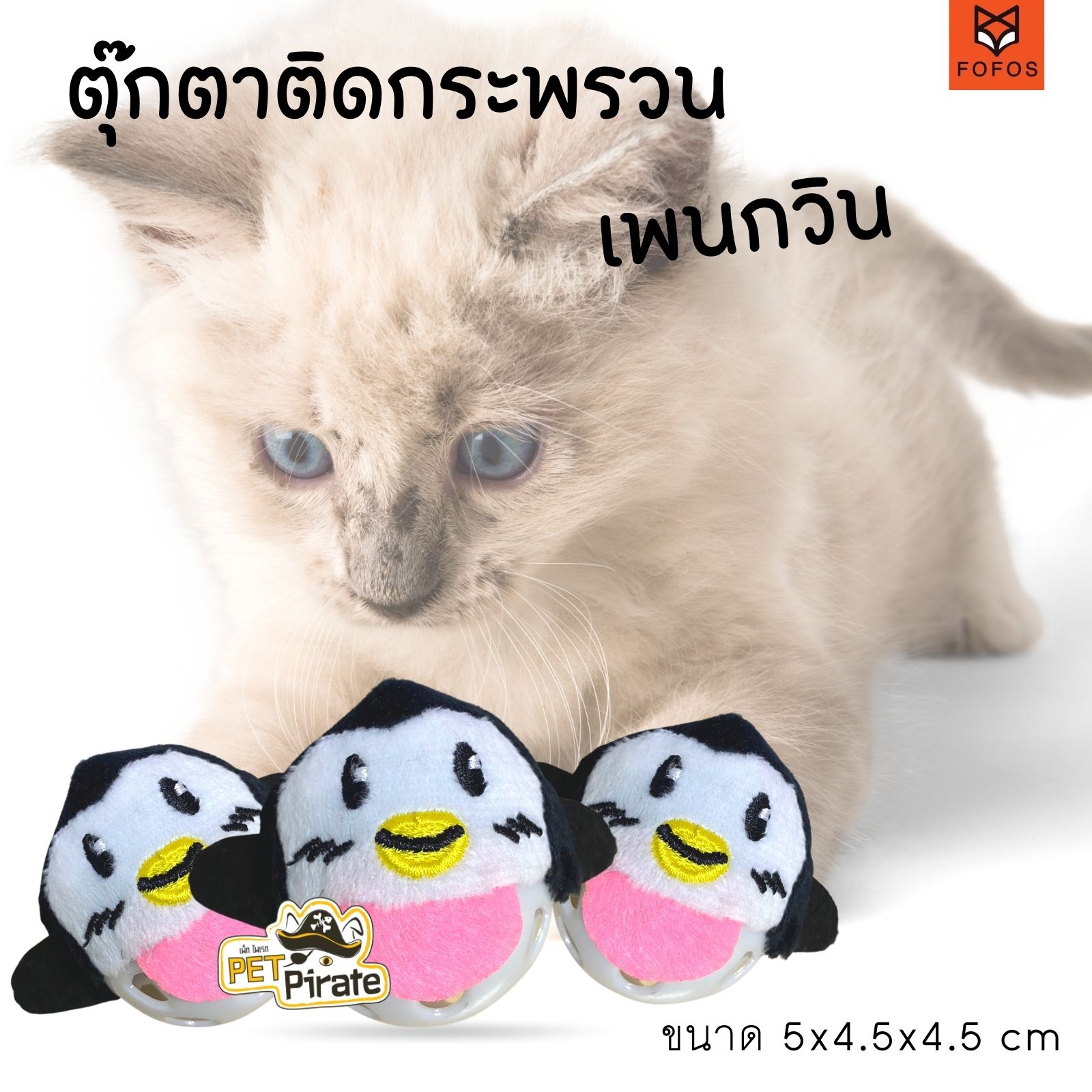 FOFOS ของเล่นแมว ลูกบอลแมวกระดิ่งกรุ๊งกริ๊ง ลูกบอลพลาสติกหุ้มผ้านิ่มส่วนหัว เล่นเขี่ย ตะปบ ไล่กวด มีให้เลือก 3 แบบ