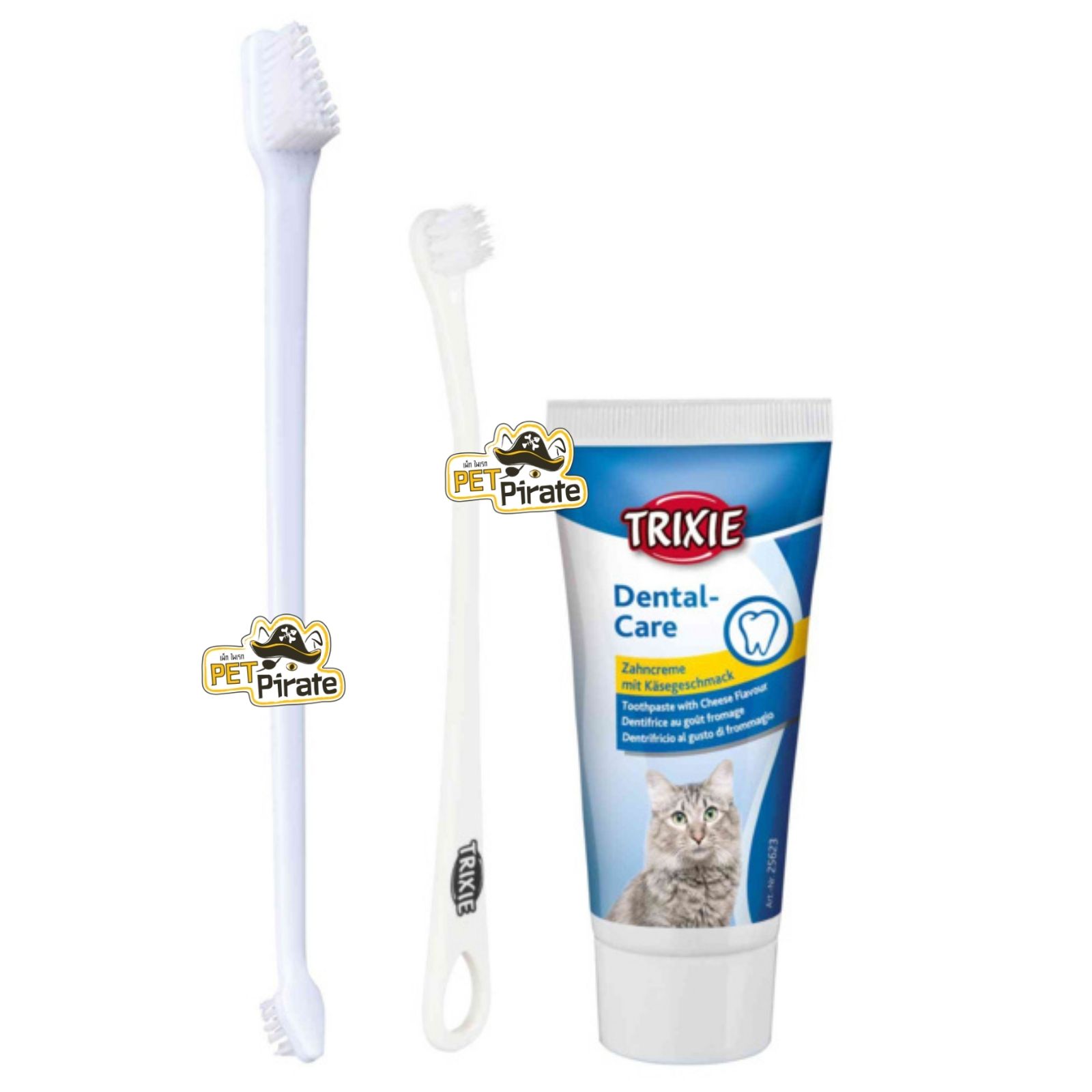 Trixie Dental-Care ชุดทำความสะอาดฟันสำหรับแมวโดยเฉพาะ ยาสีฟันกลิ่นชีส