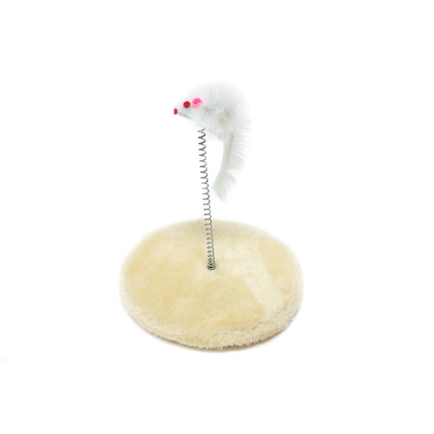 ของเล่นแมว ก้านสปริงติดหนู ฐานกลม สีน้ำตาล